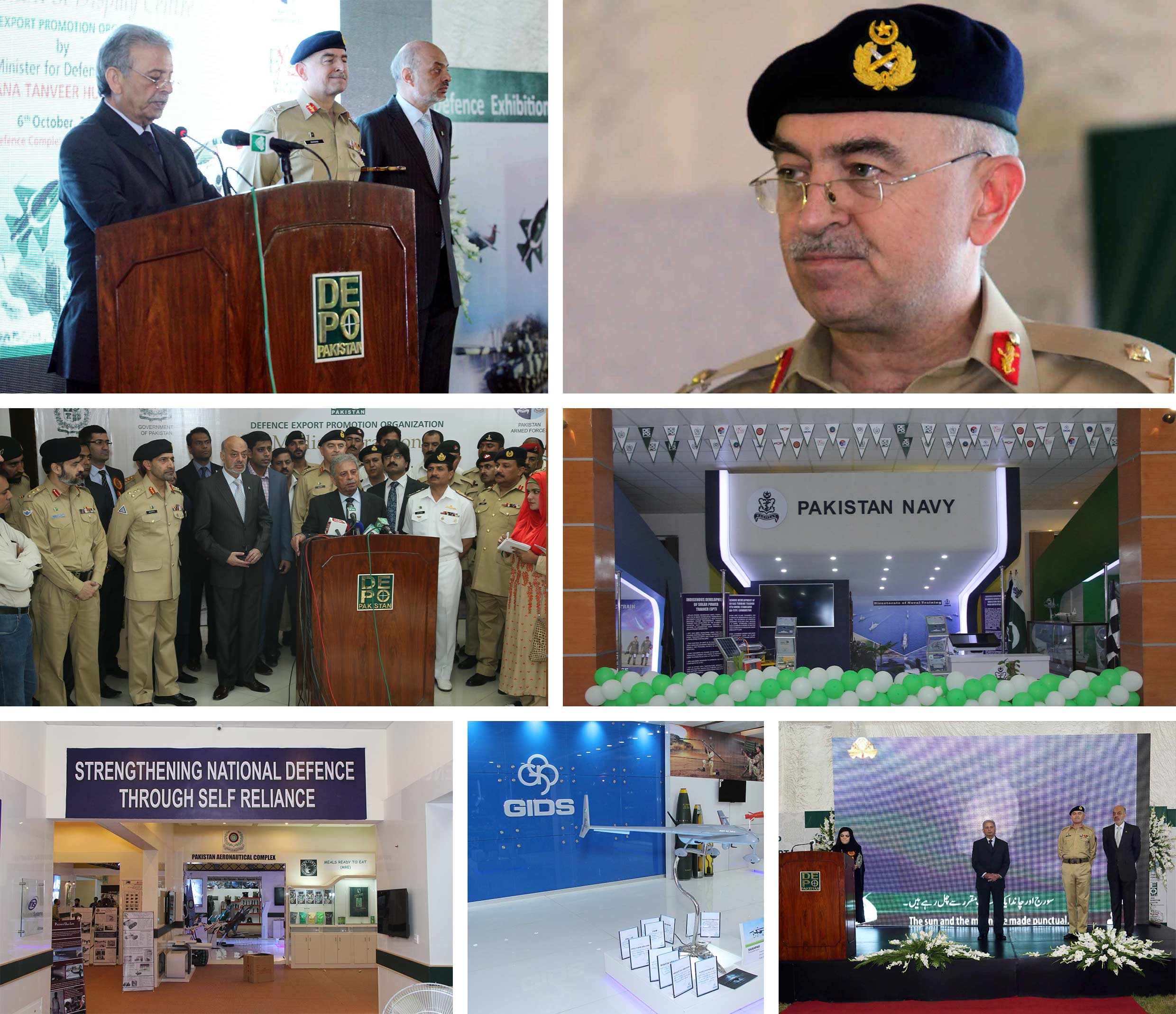 To optimize the potential of public and private sectors in the defence export and to proudly showcase Pakistani indigenous defence capability and military prowess to all the foreign military delegations visiting Pakistan, DEPO instituted a state of the art Display Centre at Defence Complex Islamabad (DCI), in which defence related products manufactured by public and private sectors of Pakistan are being showcased under one roof. The notable products / information displayed, are from HIT, POF, PAC, KS&EW, GIDS, NRTC, training packages offered by three services, PMTF, PSM, IOP, MVRDE, ARDE, Strategic Export Control Div, PAF Project Vision, Military College of Signal, National System, Metasco Intl, Panaforce, Fast Cable, Afridi Arms, CARE, SARG, Daud Son, East West Infiniti, Askari Shoes (AWT), Pak Business Aviation, Soft Innovative System, Akhtar Industries and Badar Expo Solutions, the Event Manager of IDEAS 2016. Private sector has come a big way in establishing the stalls at DEPO.
